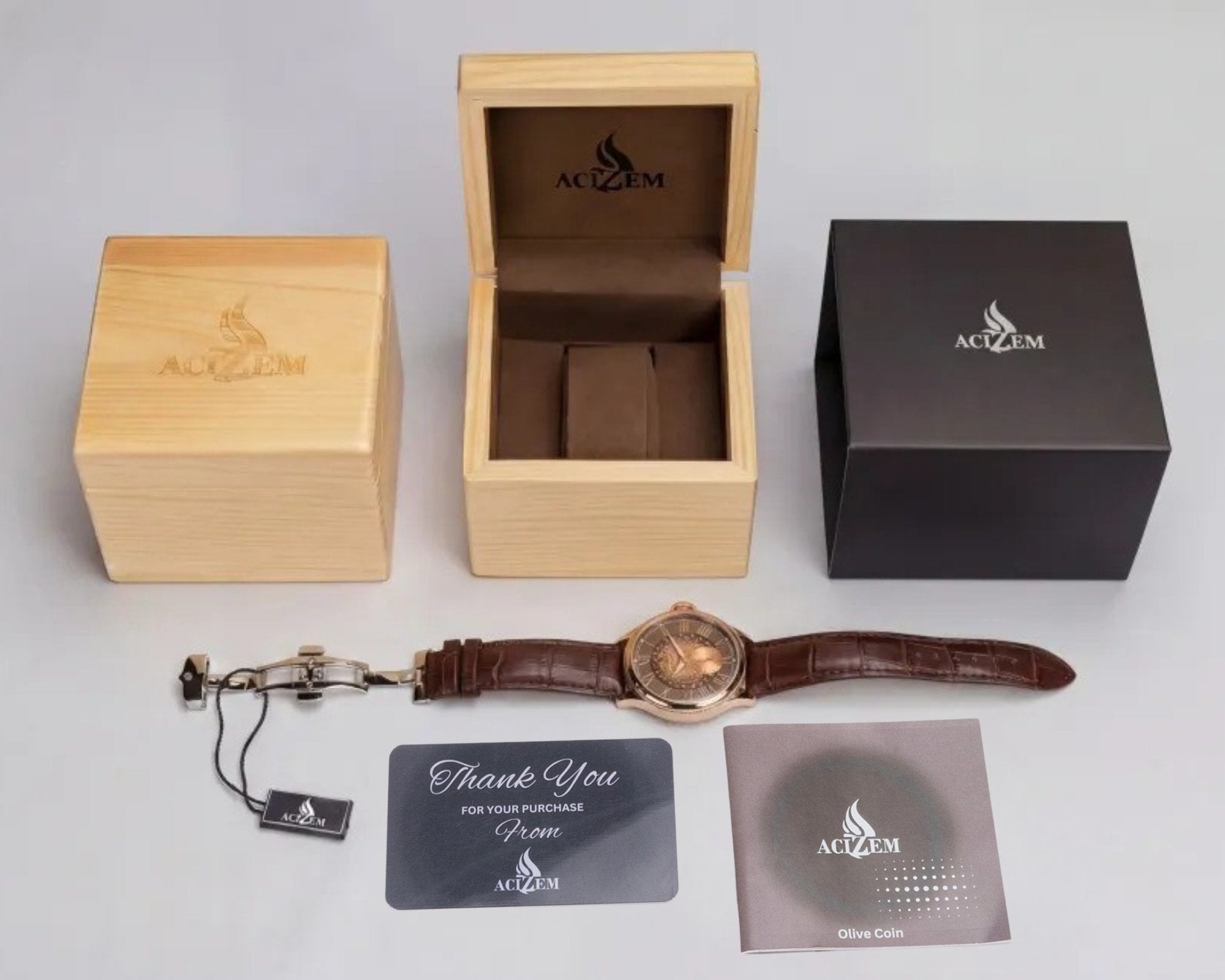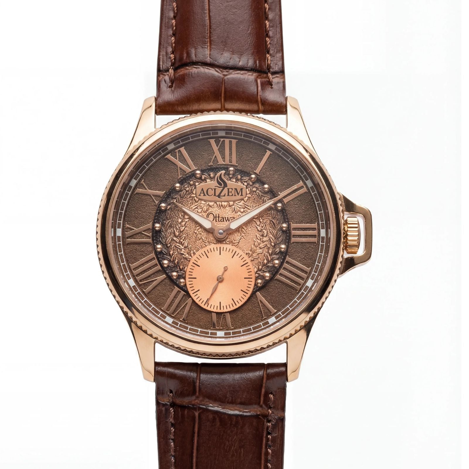 The Olive Coin is more than a watch to Éluu Goddiâ—it is a canvas to tell the story of Canada's cultural diversity. Inspired by the olive tree’s ancient symbolism of hope, life, and peace, the timepiece reflects values shared by many immigrant communities. Just as seen In Greek mythology, the olive tree symbolized peace and gave birth to Athens, in other European and Middle-Eastern cultures, the olive branch not only symbolizes peace, but victory, fidelity and strength, friendship, fruitfulness, light, and richness. Éluu merged these universal sentiments with Canada’s values, designing a timepiece that honors the shared aspirations of Canadians. The Olive Coin is a wearable tribute to the unity in multiplicity that defines modern Canada.