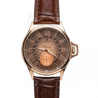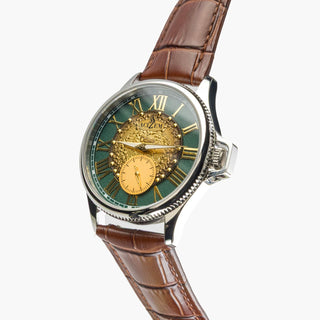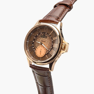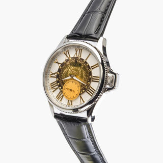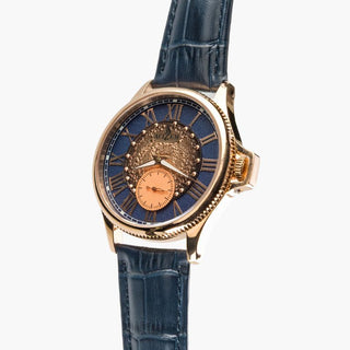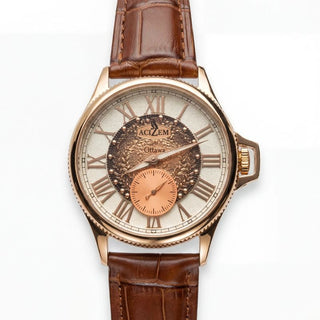The Enygmah design by Éluu Goddiâ honors those who left everything behind in search of a new beginning. Carrying hope into unknown lands, they rebuilt their lives, rediscovered themselves, and turned uncertainty into strength. The watch represents their courage and transformation.