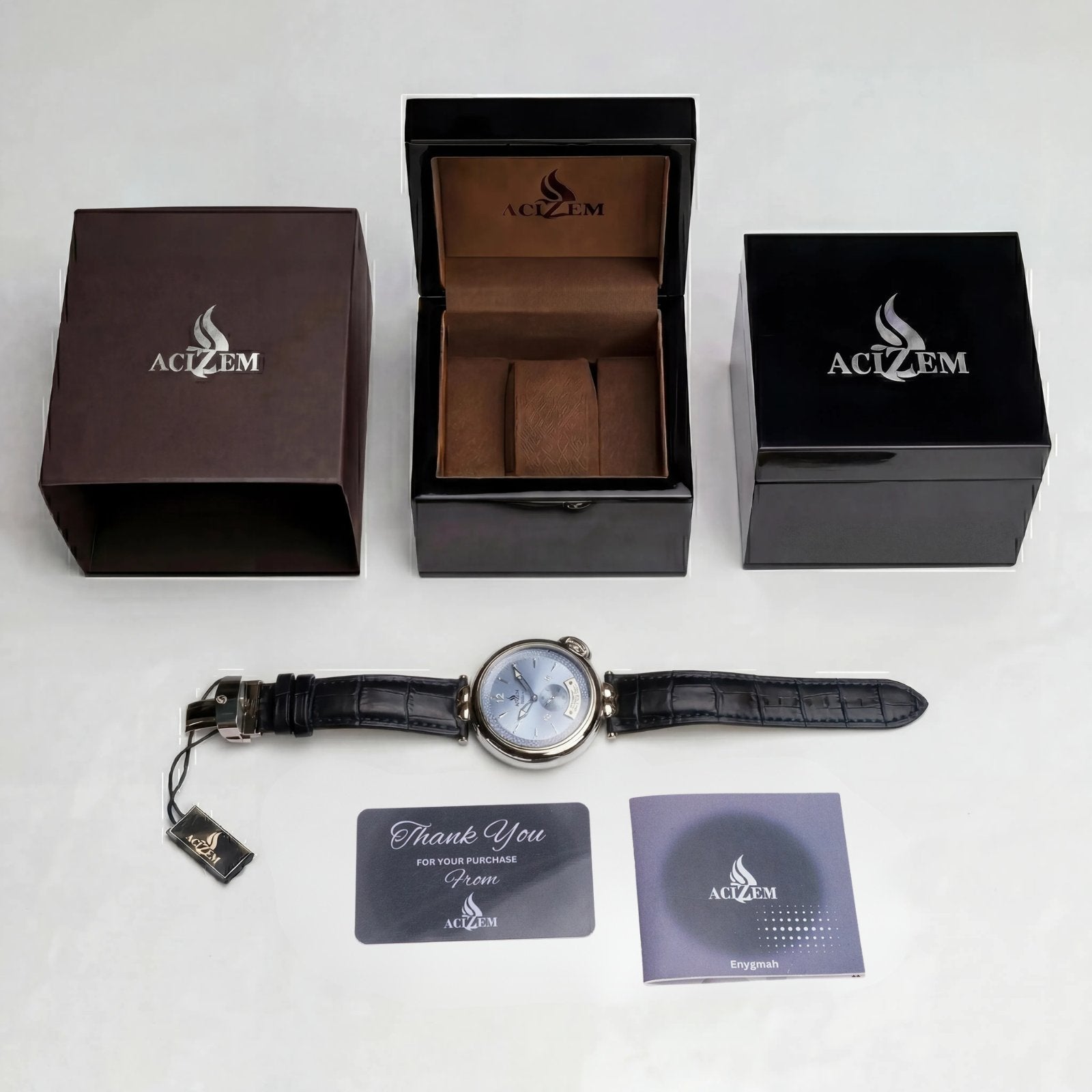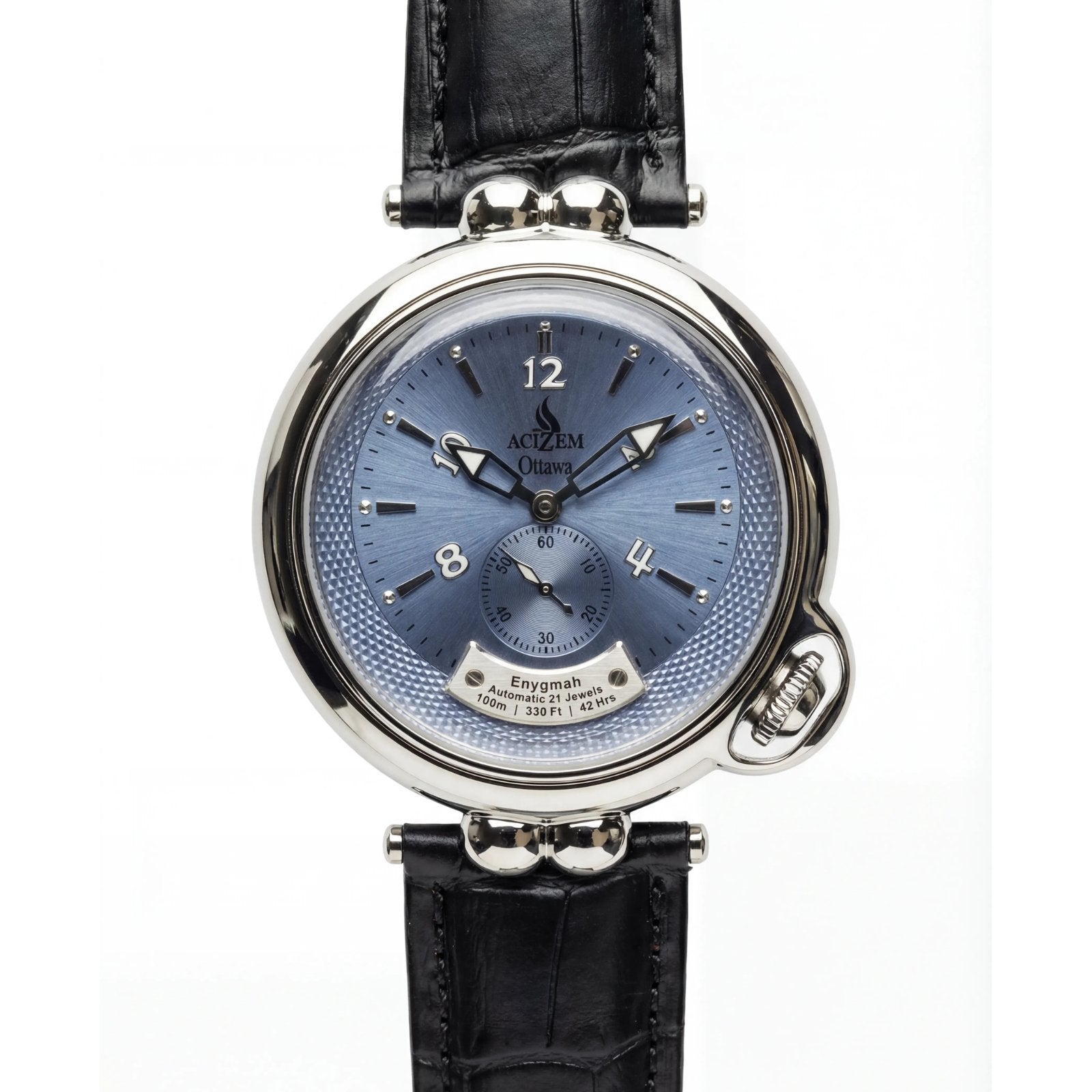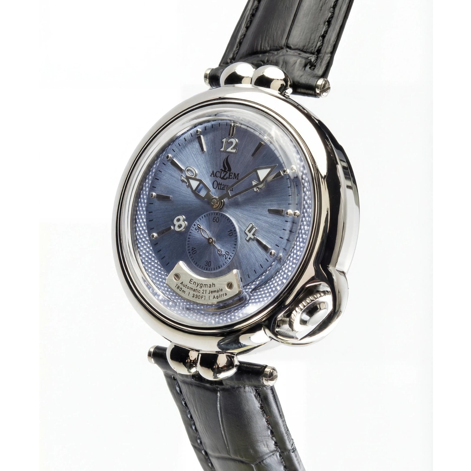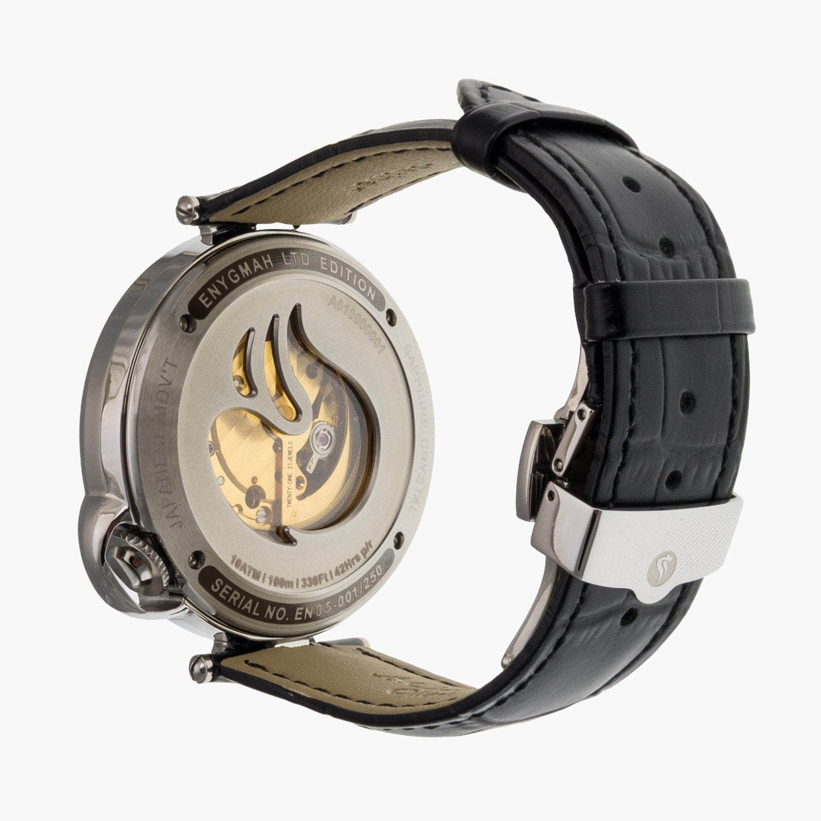 Éluu Goddiâ’s Enygmah design was born from the stories of those who left everything behind to start again. Enygmah is dedicated to those who had to run from everything they knew: cities torn by war, homes poisoned by abuse, hearts broken by loss or betrayal, and countries ravaged by inequality, injustice and uncertainty. They stepped into the unknown as a mystery, into unfamiliar lands carrying only the weight of their hopes — enigmas wrapped in courage. Over time, they found love, rebuilt careers, and redefined their identities. The Enygmah is their symbol—a watch crafted to honor the strength of becoming whole again, even in a place where you once felt unknown.