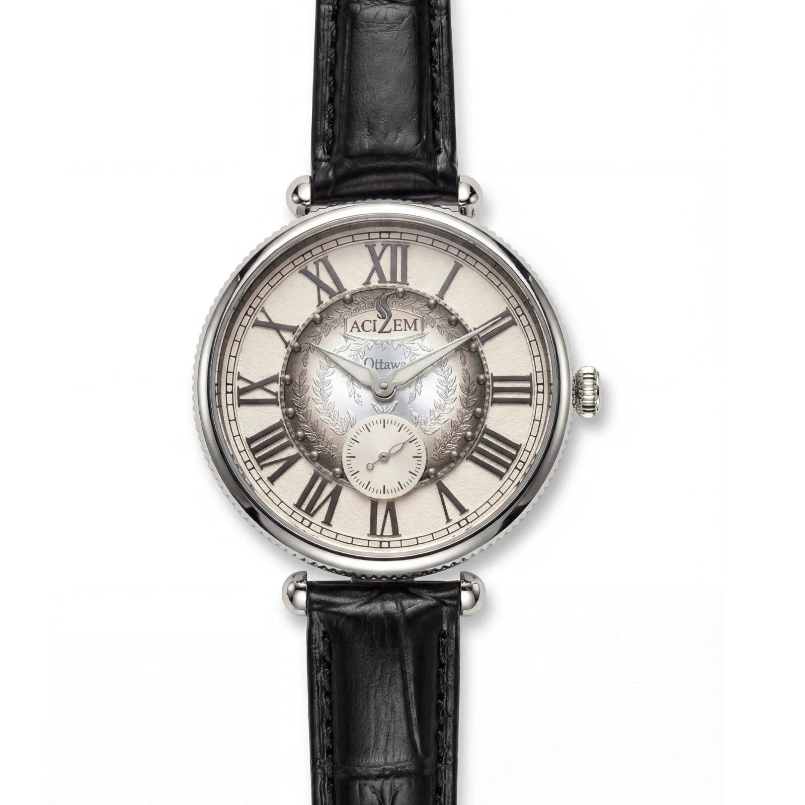 The Olive Coin is more than a watch to Éluu Goddiâ—it is a canvas to tell the story of Canada's cultural diversity. Inspired by the olive tree’s ancient symbolism of hope, life, and peace, the timepiece reflects values shared by many immigrant communities. Just as seen In Greek mythology, the olive tree symbolized peace and gave birth to Athens, in other European and Middle-Eastern cultures, the olive branch not only symbolizes peace, but victory, fidelity and strength, friendship, fruitfulness, light, and richness. Éluu merged these universal sentiments with Canada’s values, designing a timepiece that honors the shared aspirations of Canadians. The Olive Coin is a wearable tribute to the unity in multiplicity that defines modern Canada.