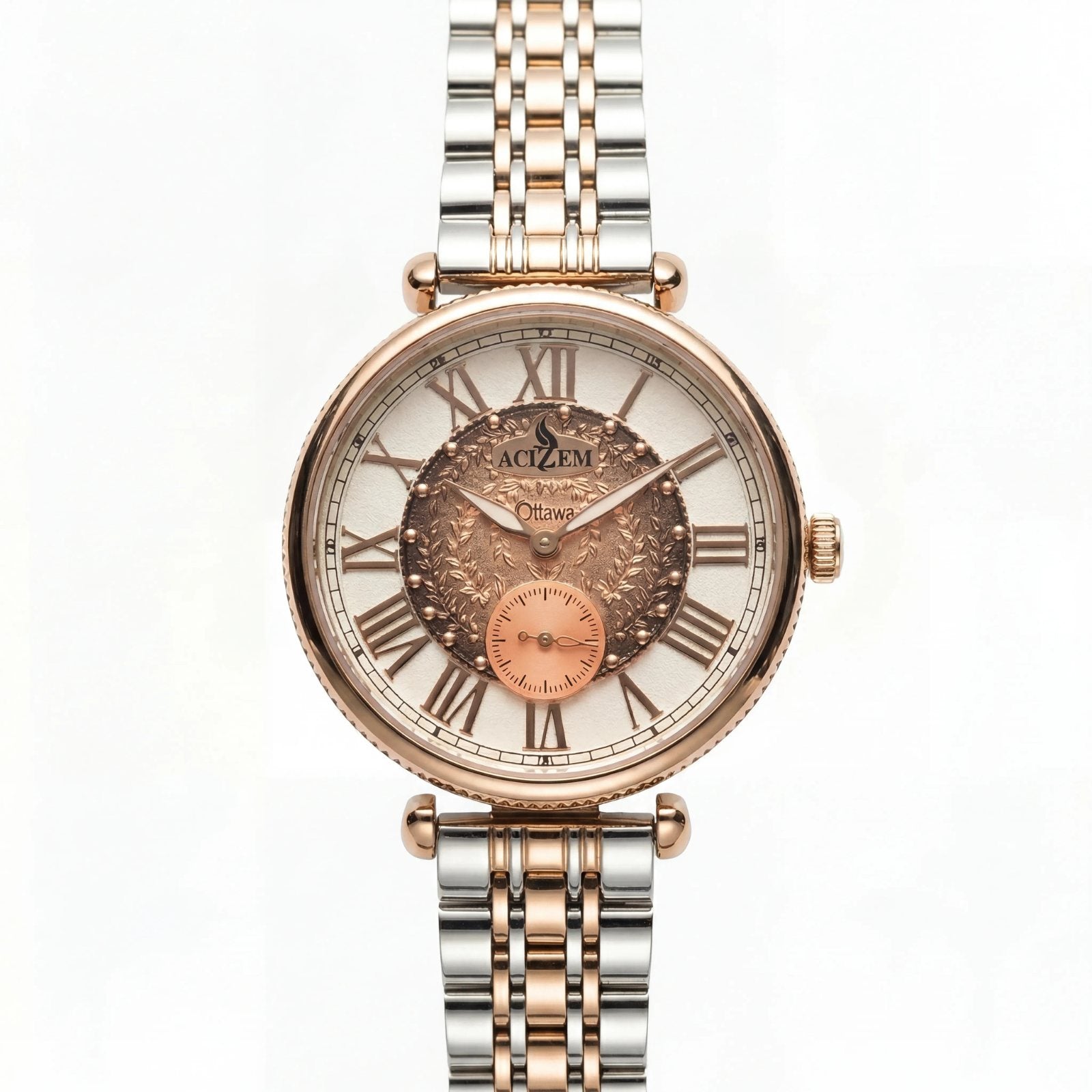 The Olive Coin is more than a watch to Éluu Goddiâ—it is a canvas to tell the story of Canada's cultural diversity. Inspired by the olive tree’s ancient symbolism of hope, life, and peace, the timepiece reflects values shared by many immigrant communities. Just as seen In Greek mythology, the olive tree symbolized peace and gave birth to Athens, in other European and Middle-Eastern cultures, the olive branch not only symbolizes peace, but victory, fidelity and strength, friendship, fruitfulness, light, and richness. Éluu merged these universal sentiments with Canada’s values, designing a timepiece that honors the shared aspirations of Canadians. The Olive Coin is a wearable tribute to the unity in multiplicity that defines modern Canada.